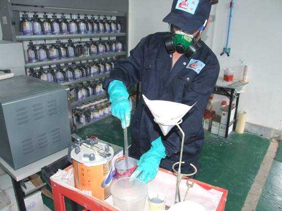 老師們進行調配底漆