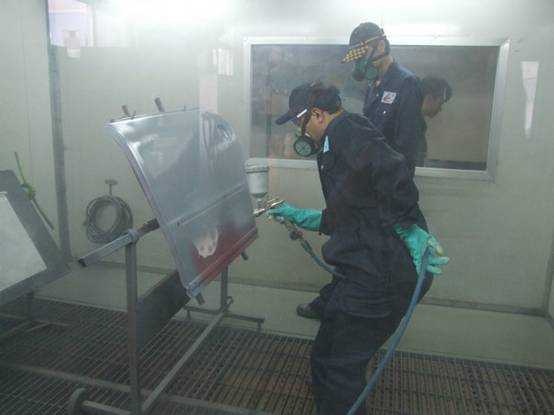 宋老師烤漆房內講解調校噴槍方法