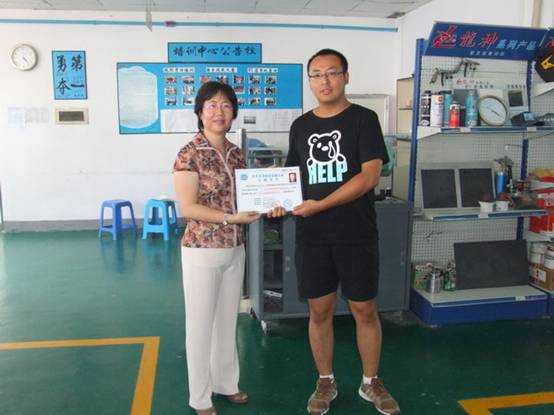 我司彭經理頒發(fā)“汽車車身修復技能認證合格證書”