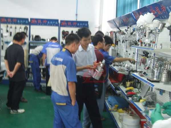龍神講師向一汽馬自達的師傅介紹意大利威彩噴槍的優(yōu)點