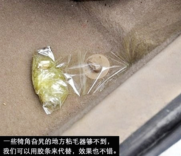 如果沒有吸塵器怎么辦呢?別急,我們可以用粘毛器或膠條來(lái)代替吸塵器,效果也是比較明顯的。我們可以先用粘毛器來(lái)清潔地面平整的部分,一些角落或座位下等不容易清理的部分可以用膠條來(lái)清理。
