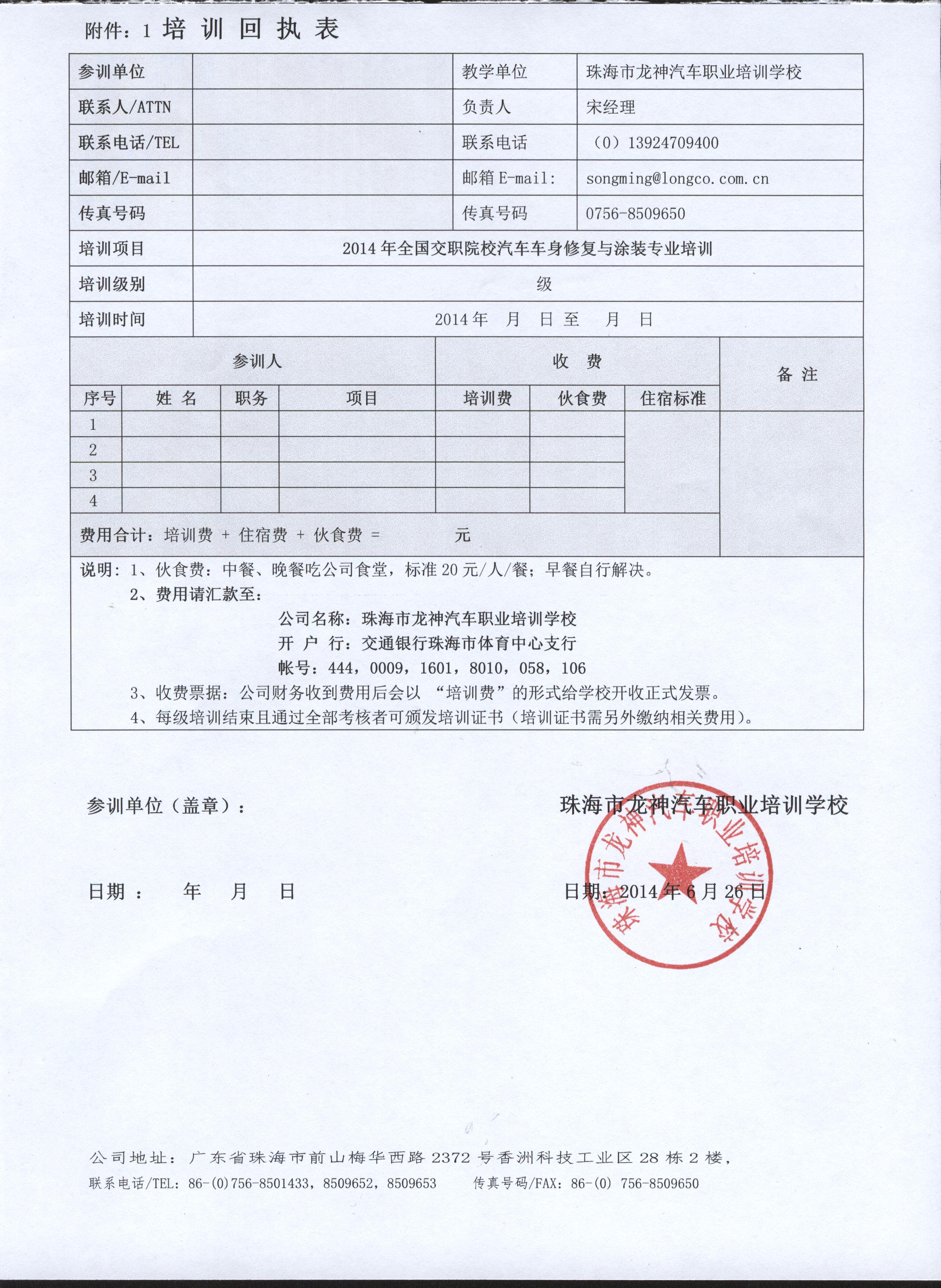 附件:1 培 訓(xùn) 回 執(zhí) 表