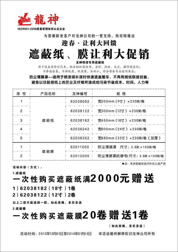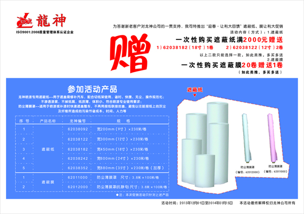 2013年遮蔽紙、膜促銷(xiāo)方案