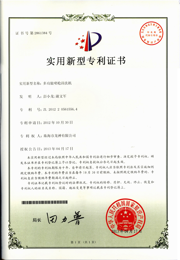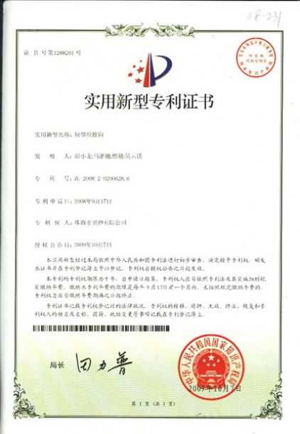 產(chǎn)品專利 多角度鈑噴架專利證書(shū) 新型焊接臺(tái)專利證書(shū) 一種自動(dòng)測(cè)量切膜架專利證書(shū) 油漆色樣烘烤箱專利證書(shū) 精確可調(diào)整形架專利證書(shū) 移動(dòng)式無(wú)塵干磨專利證書(shū) 管道快速連接件專利證書(shū) 塊型拉拔鉤專利證書(shū) 噴槍清洗機(jī)專利證書(shū) 無(wú)靜電干燥加熱器專利證書(shū) 壓縮空氣空壓機(jī)房供應(yīng)系統(tǒng)專利證書(shū) 除油劑導(dǎo)料器專利證書(shū) 多功能噴槍清洗機(jī) 環(huán)保自吸塵打磨系統(tǒng) 切膜裝置 汽車保險(xiǎn)杠修復(fù)專用電烙鐵 遮蔽紙切紙架專利證書(shū) 調(diào)漆裝置專利證書(shū) 噴漆柜專利證書(shū) 2012-11-27 34677