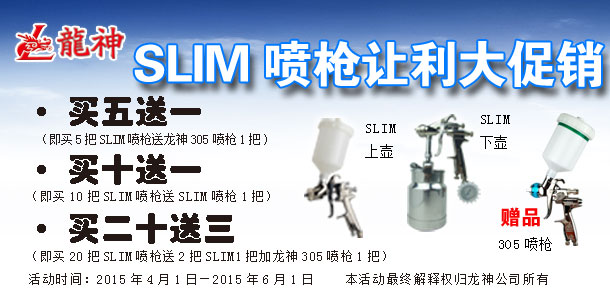 2013年10月至12月SLIM噴槍促銷方案 2013-10-12 11718 SLIM噴槍讓利大促銷,起始時(shí)間:2013年10月14日至2013年12月14日,時(shí)長(zhǎng):二個(gè)月。
